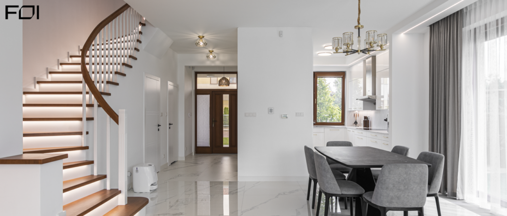 Prezentujemy realizację wnętrza domu jednorodzinnego, w której kluczową rolę odgrywają indywidualnie zaprojektowane zabudowy stolarskie oraz naturalne materiały wykończeniowe. Projekt wnętrza opiera się na eleganckiej i minimalistycznej estetyce, w której dominują drewniane powierzchnie oraz stonowana kolorystyka.